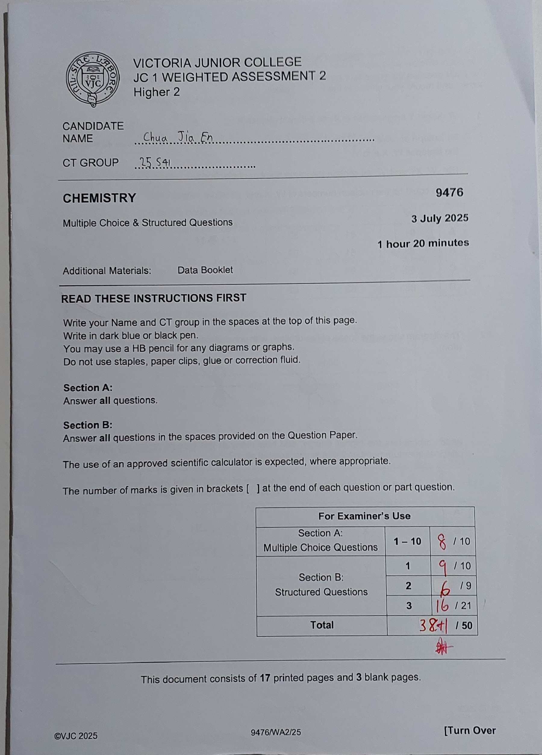 Chua Jia En Victoria Junior College WA2 H2 Chemistry Square Chua Jia En Victoria Junior College WA2 H2 Chemistry