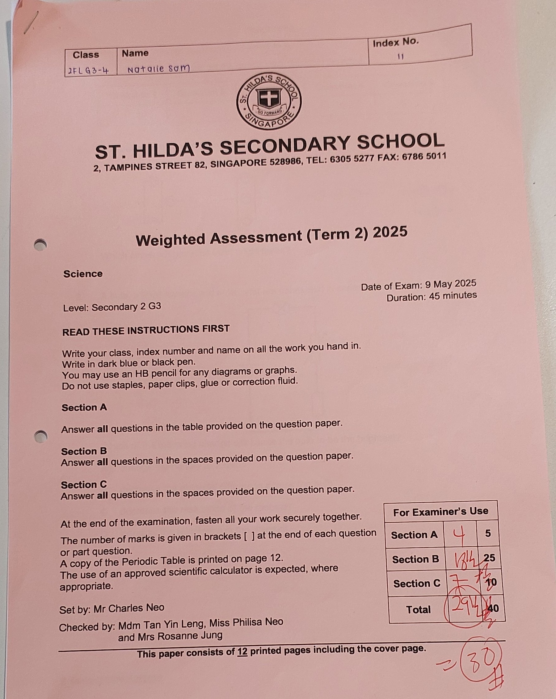 Natalie Sum St Hilda’s Secondary School Sec 2 WA 2 Science