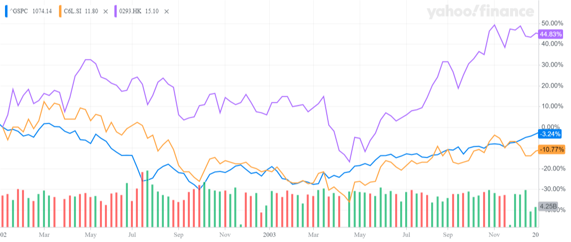• SIA’s stock price trend with S&P 500 while Cathy Pacific’s stock drop by more than 20